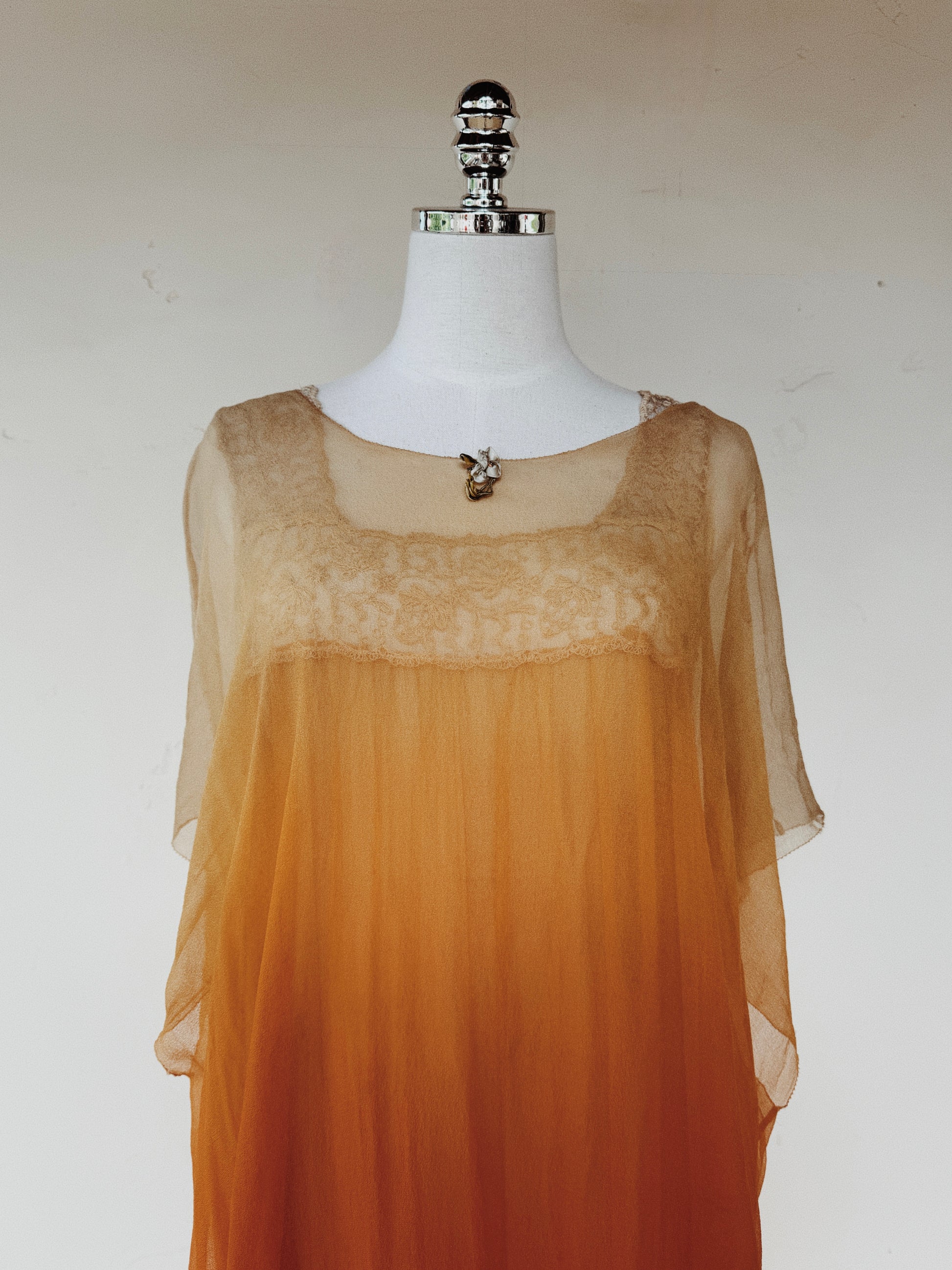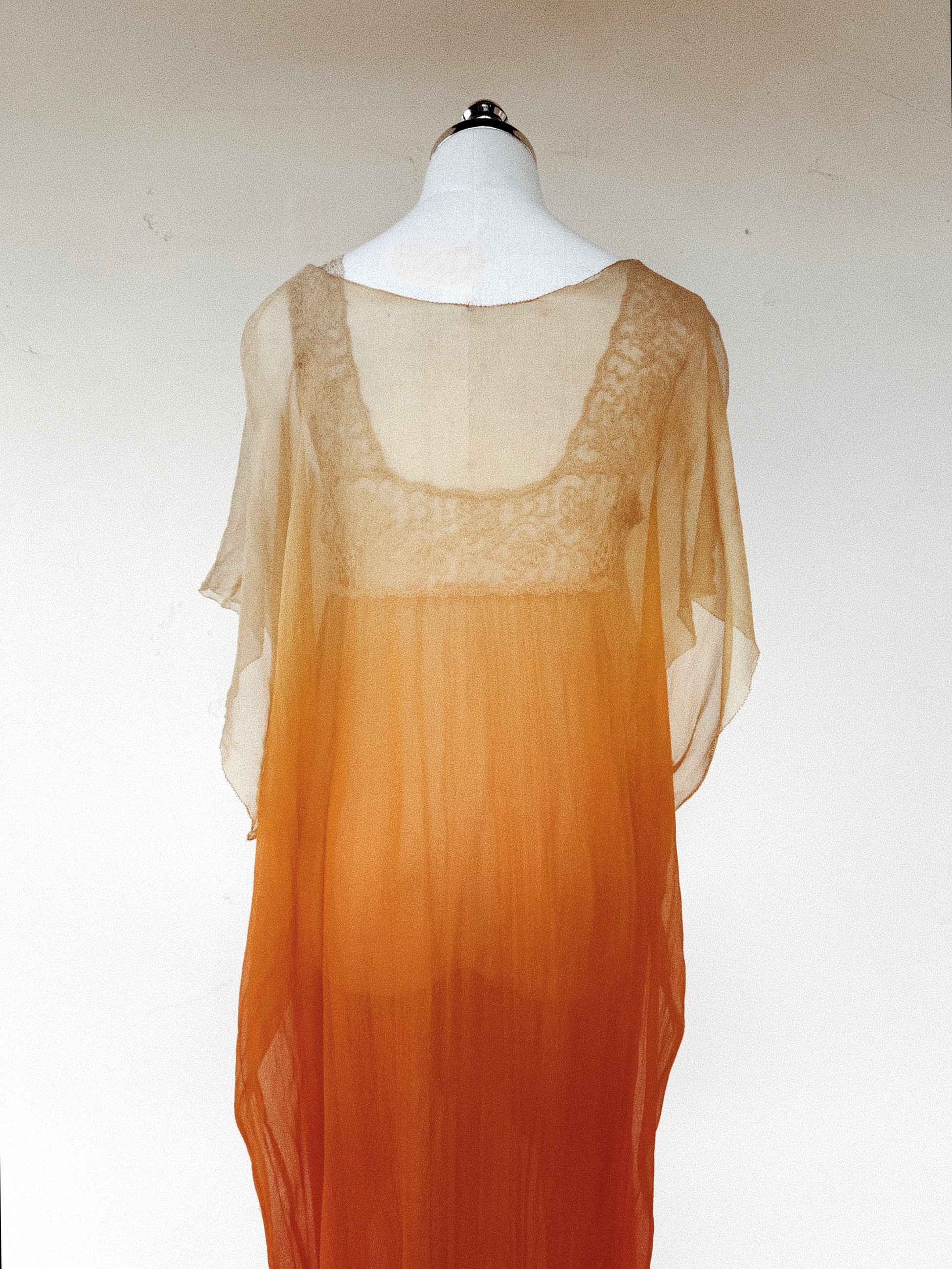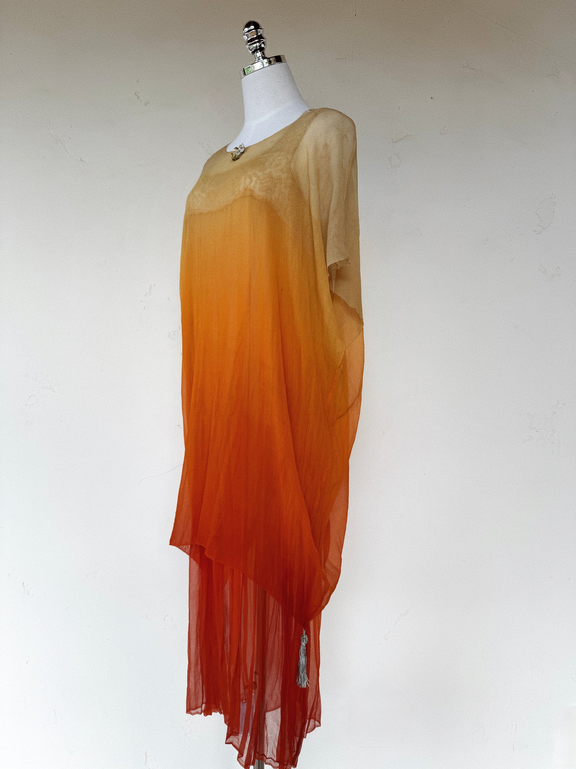 1920s Radiant Orange Ombré Silk Chiffon Ensemble- S/M