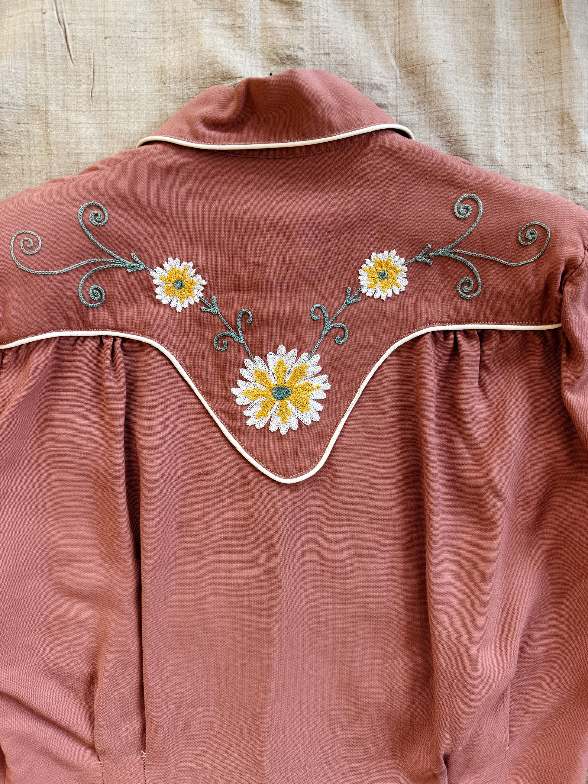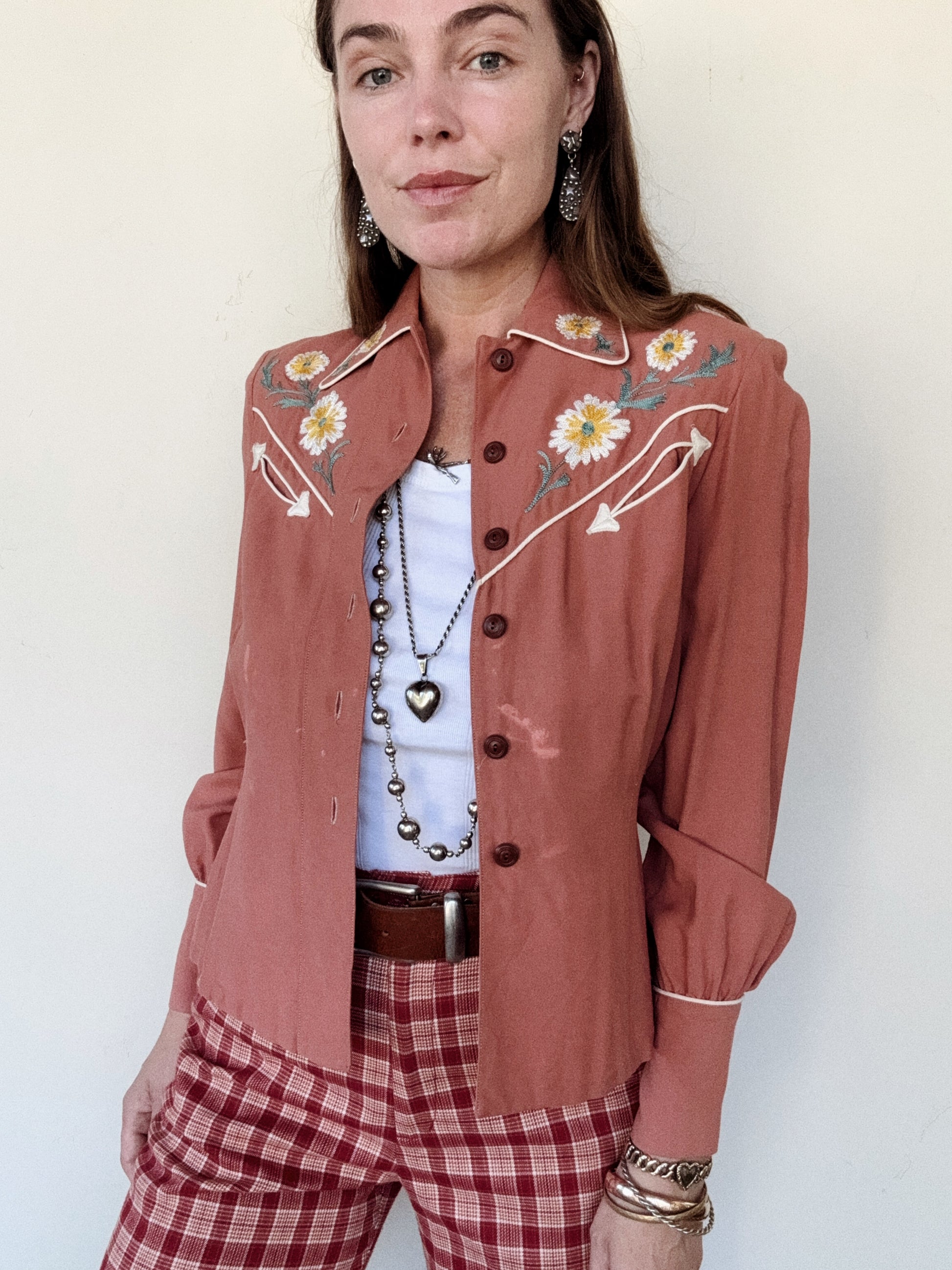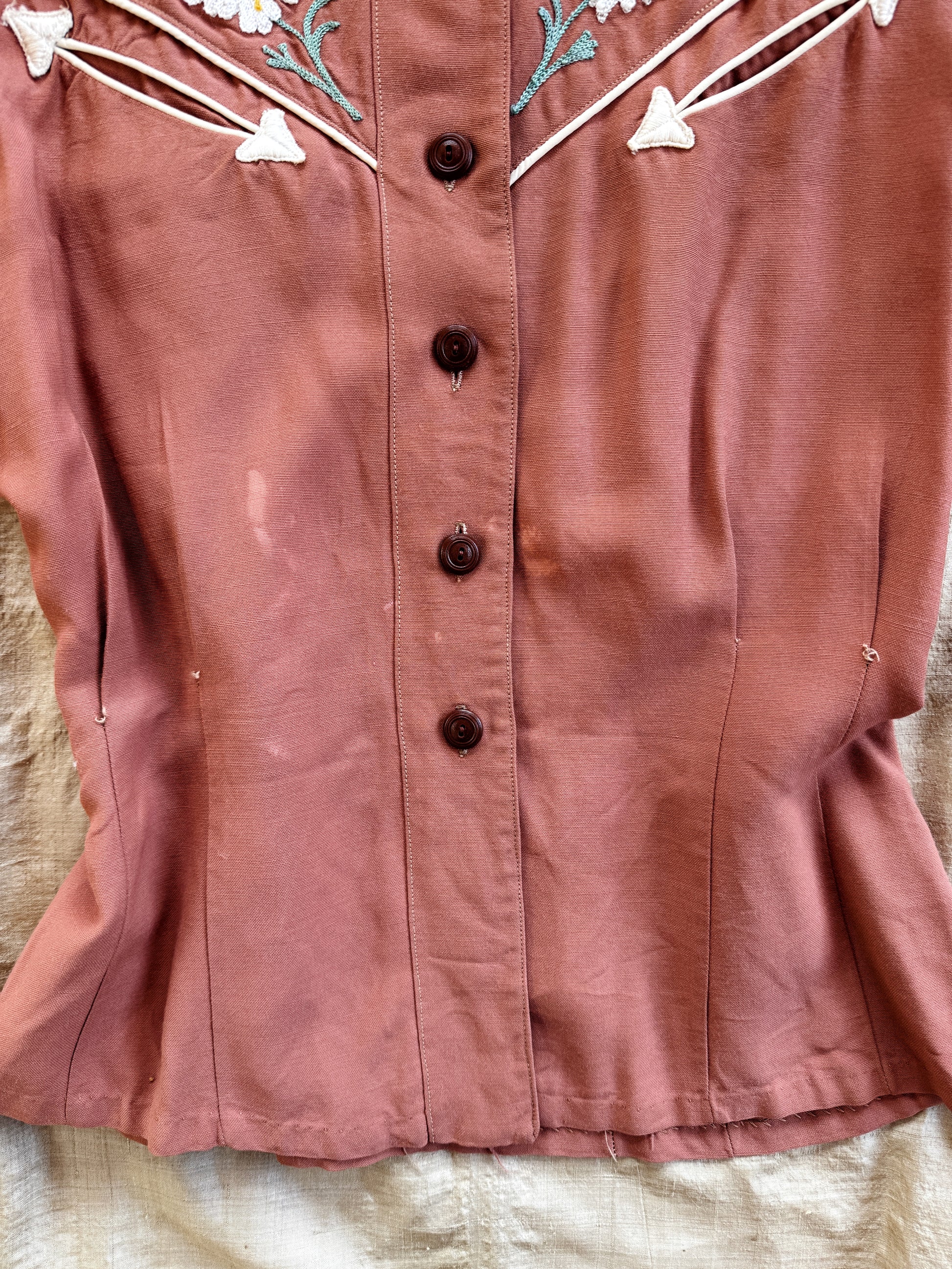 1940s/50s Clay Gabardine Chain Stitched Western Top- S-S/M