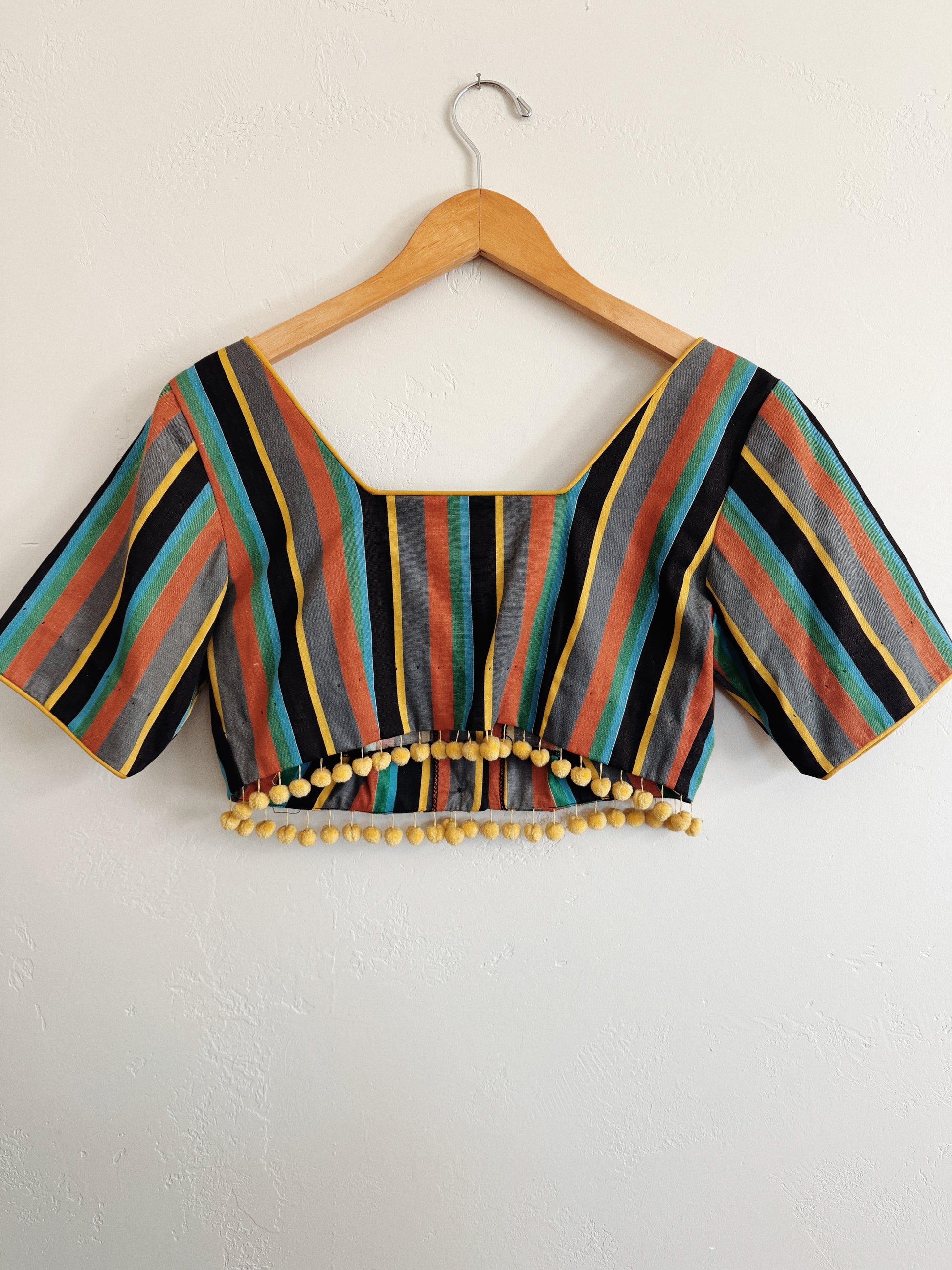 1940s/50s Striped Cropped Top w/ Pom Poms- S