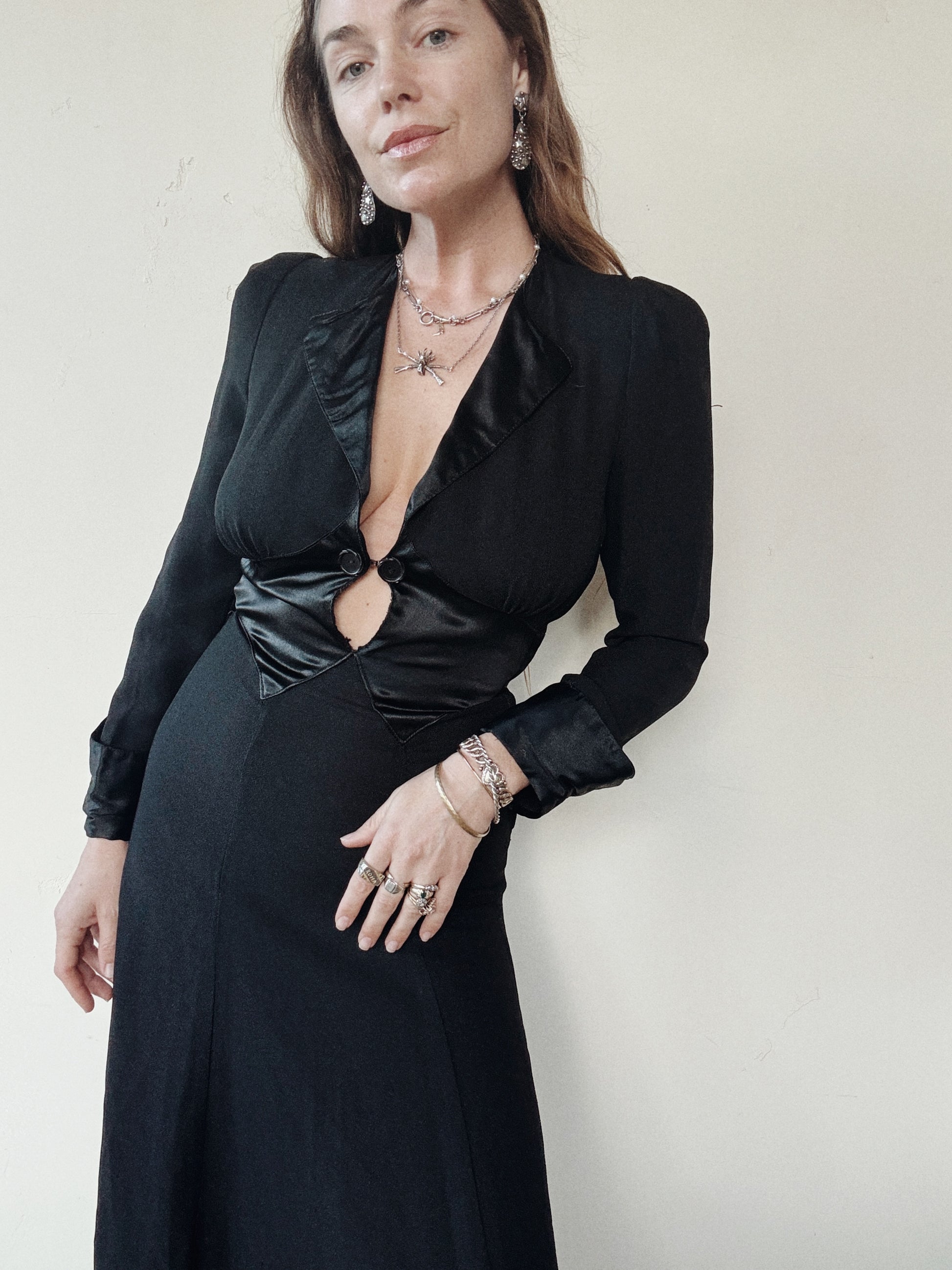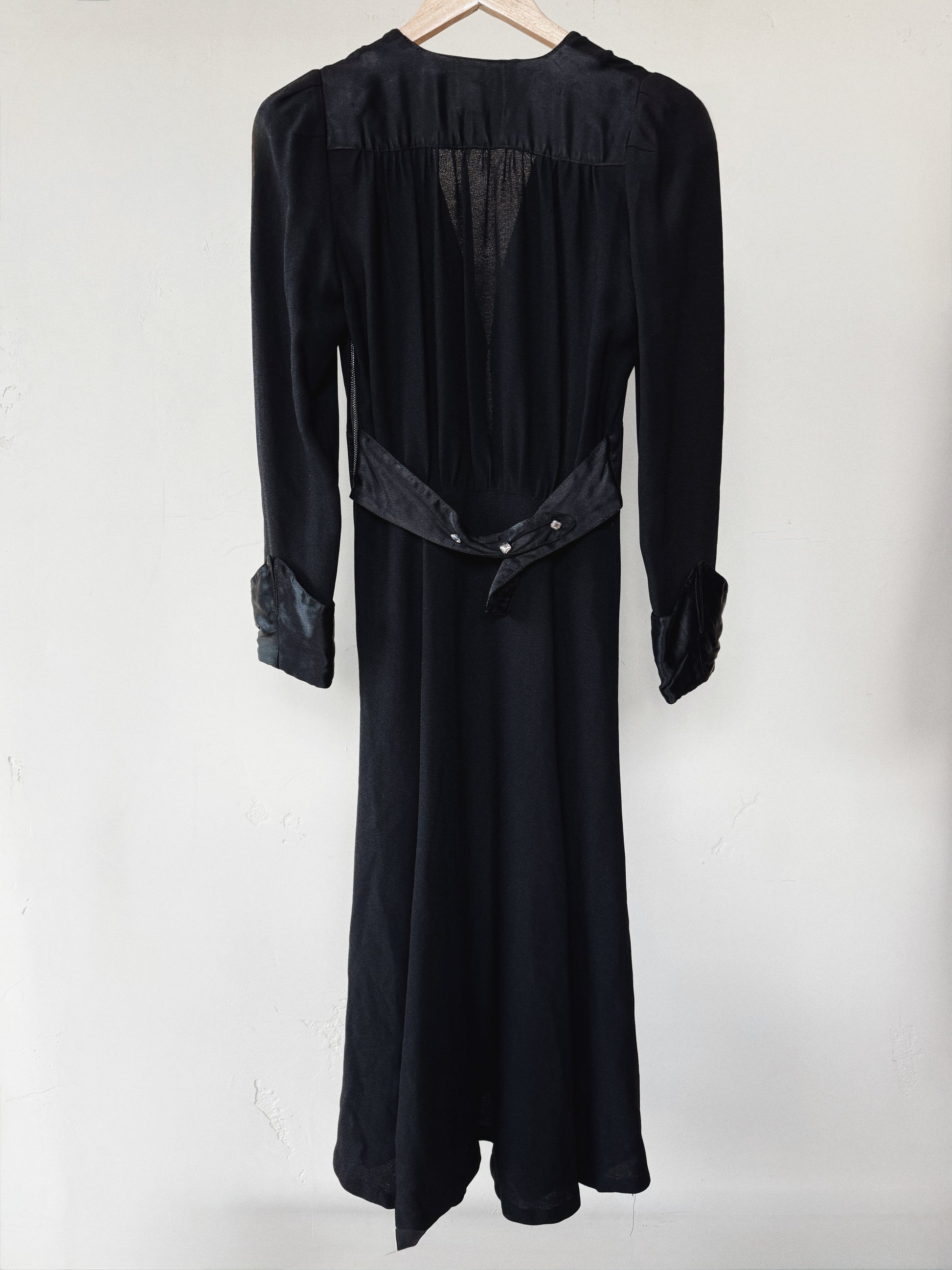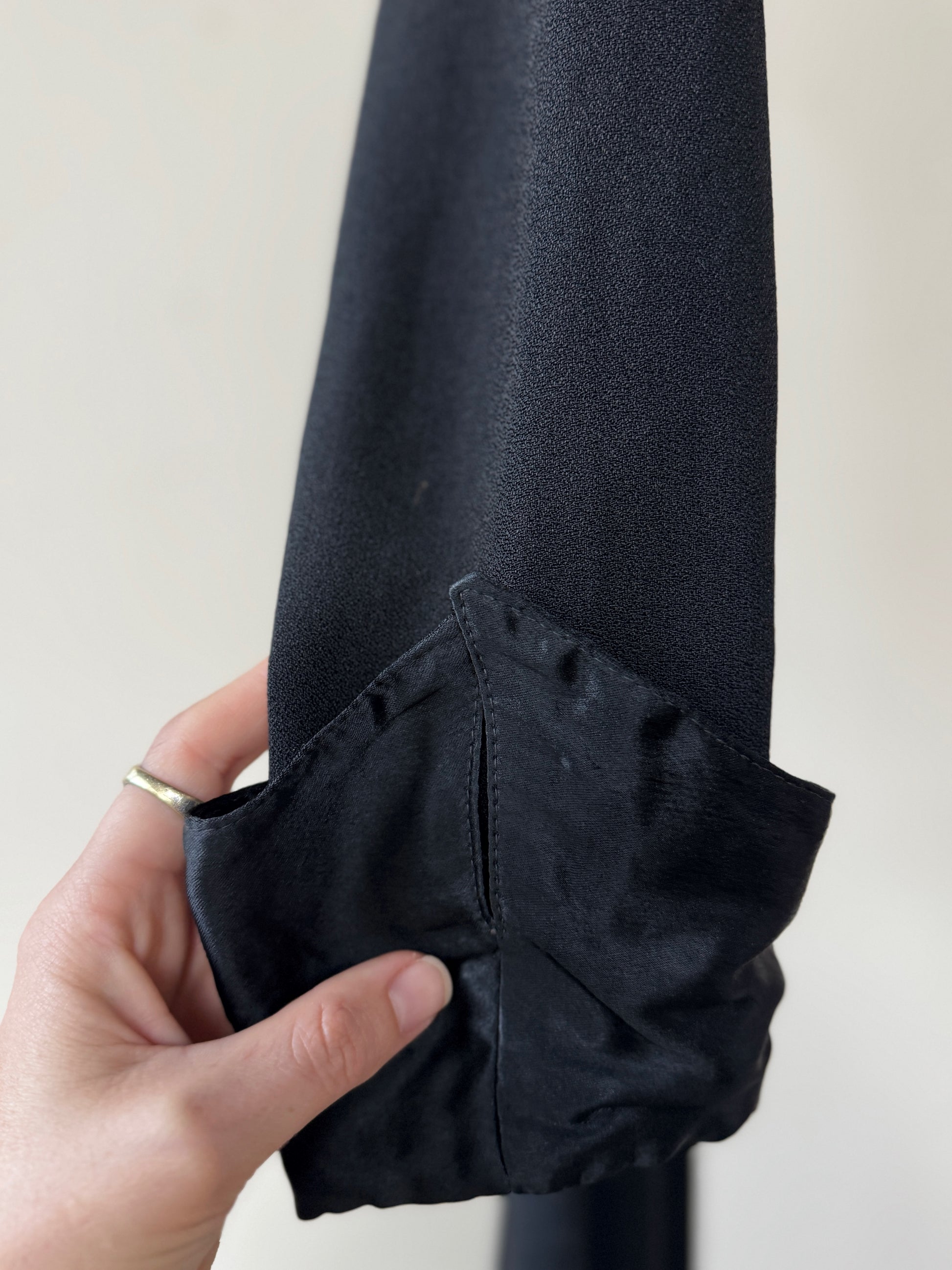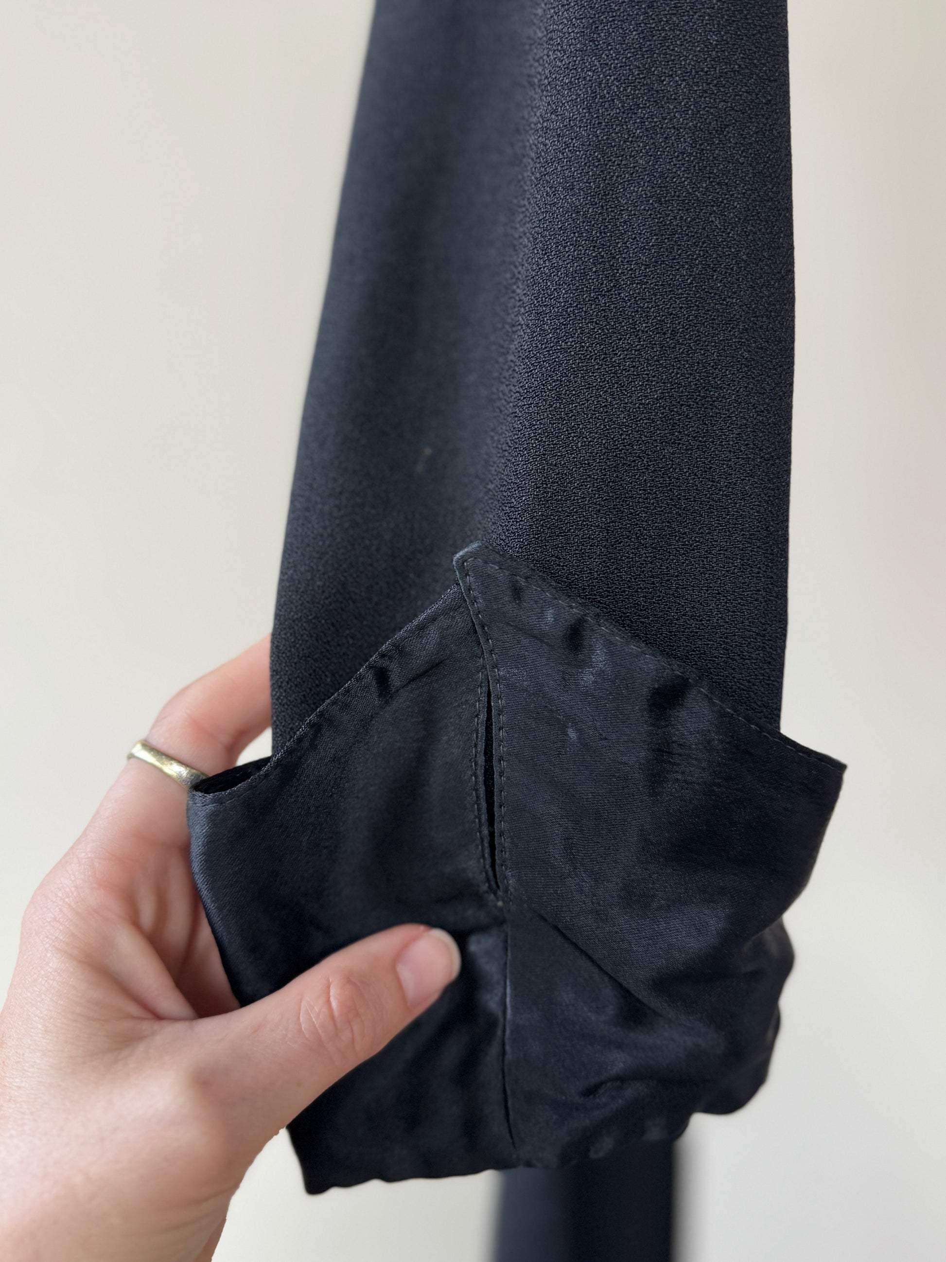 1970s Ossie Clark Black Moss Crepe Dress- S