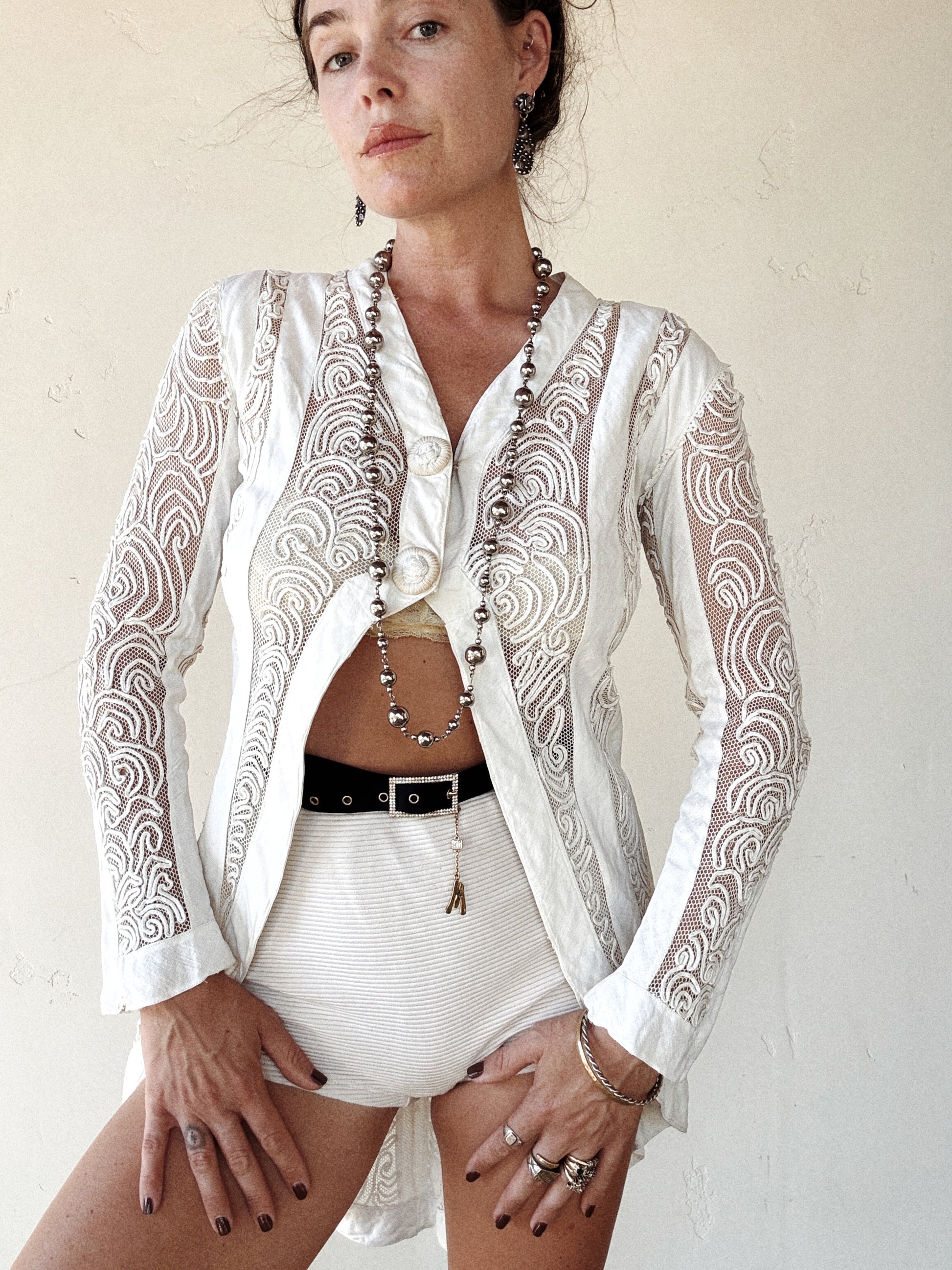 Edwardian White Linen + Net Soutache Jacket- S/M
